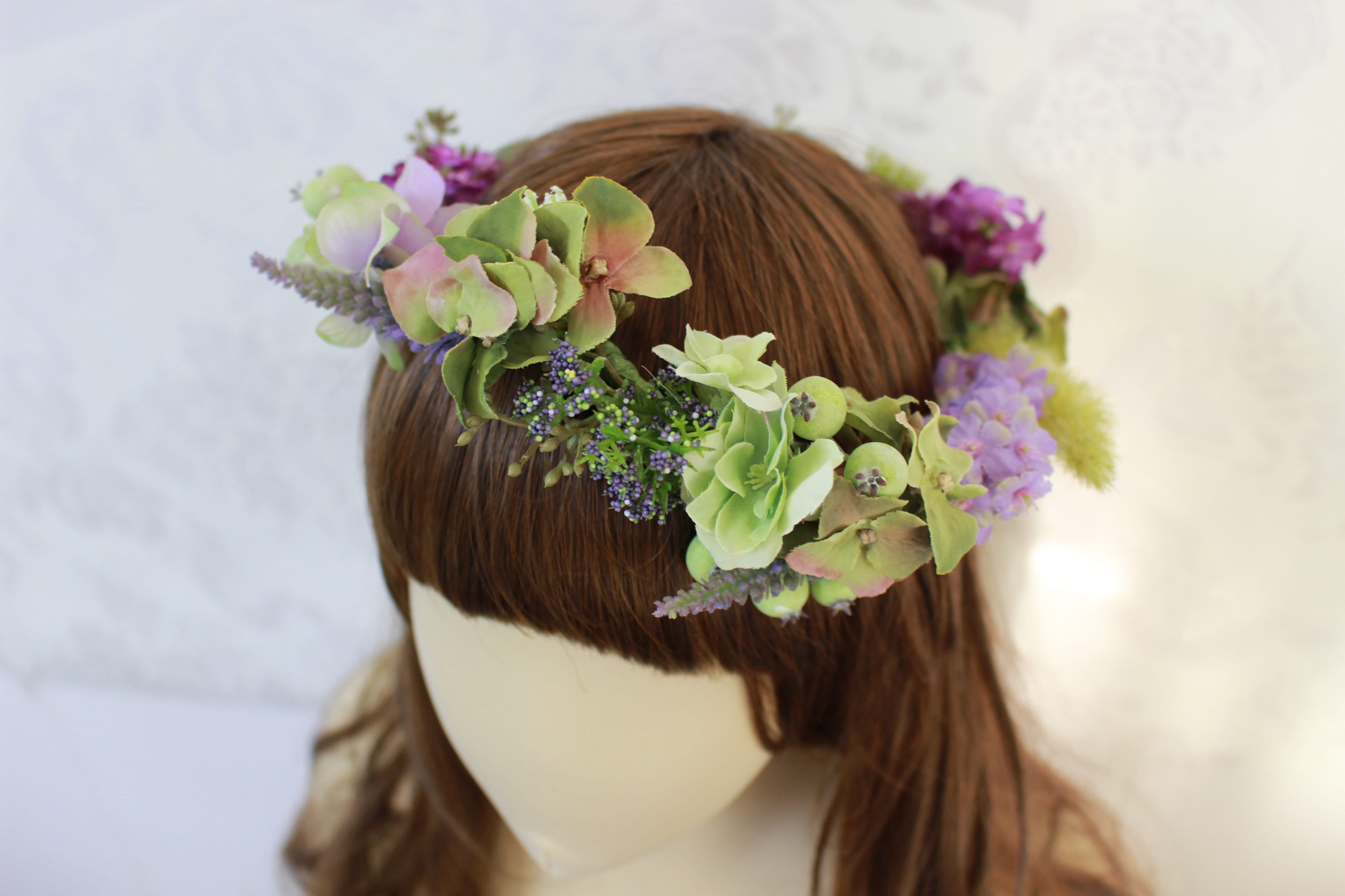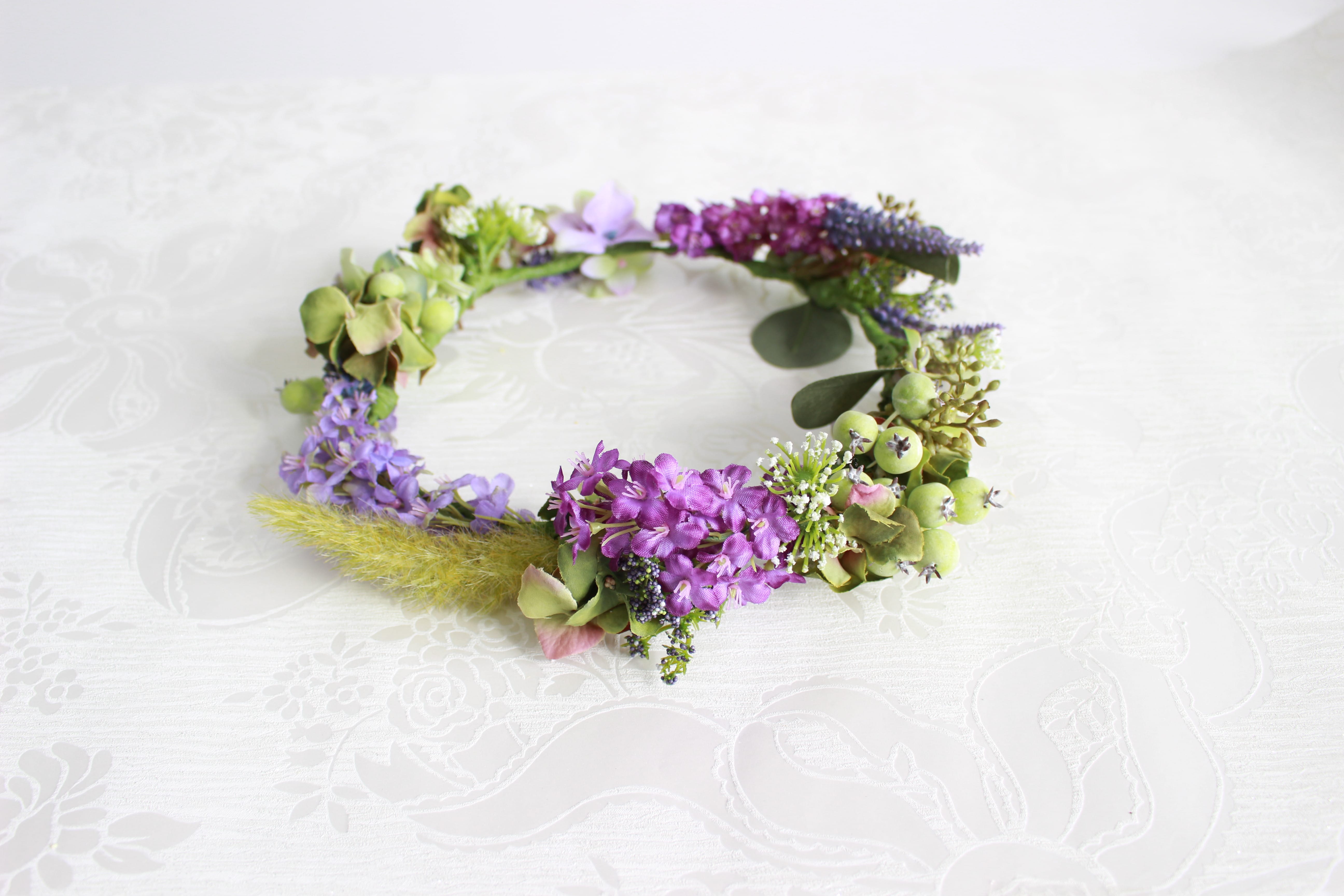 グリーンベリーとエコロノグサのナチュラル花冠