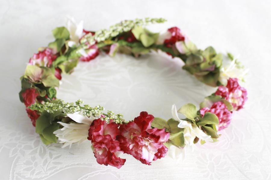 純白大輪カップ咲きローズのヘッドドレス(髪飾り)2輪